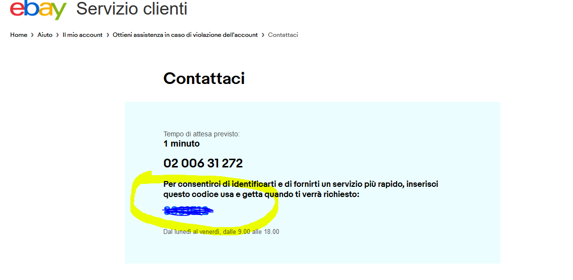 Di solito compare esattamente nello stesso pop-up in cui compare il numero dell'assistenza clienti da chiamare (tipo così):