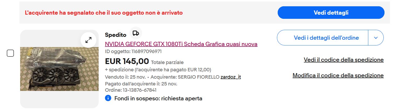 Inoltre se un acquirente apre una segnalazione per oggetto non ricevuto ebay provvede al blocco dei fondi.
