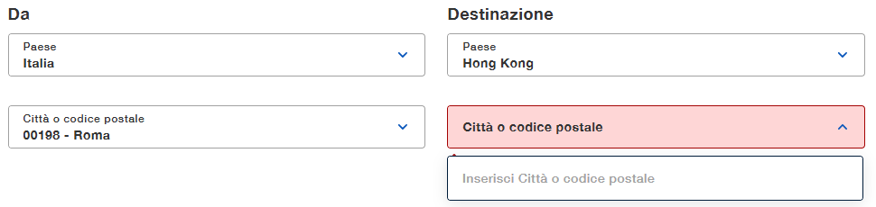 devo spedire ad Hong Kong, ma il portale Ebay spedizioni non mi fa procedere in quanto Hong Kong non dispone di uno zip code (o meglio ne ha uno fisso: 999077) però nel menu a tendina non c'è nulla, non fa cercare, se inserisco un valore me lo cancella in quanto vuole che il valore si scelga dalla lista predefinita, che però nel caso di Hong Kong è vuota! Come fare? Grazie